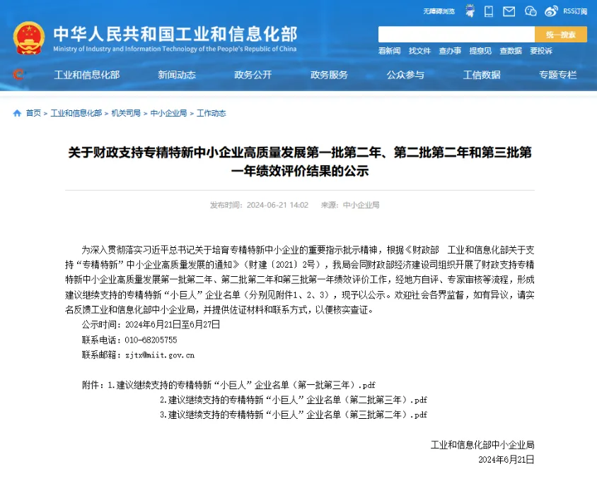 6月21日,工信部發(fā)布《關(guān)于財政支持專精特新中小企業(yè)高質(zhì)量發(fā)展第一批第二年、第二批第二年和第三批第一年績效評價結(jié)果的公示》。四川匯源光通信有限公司作為國家工信部第二批專精特新“小巨人”企業(yè)、國家第二批重點支持專精特新“小巨人”企業(yè),經(jīng)過專家組嚴格評審后,最終入選建議繼續(xù)支持的第二批第三年專精特新“小巨人”企業(yè)名單。