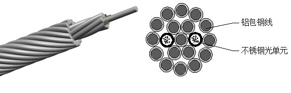 ——高強(qiáng)度、低導(dǎo)電率的鋁包鋼線承擔(dān)OPGW自重和外載負(fù)荷;利用電荷集膚效應(yīng)原理,過(guò)載或故障短路電流通過(guò)外層良導(dǎo)體疏導(dǎo),有利于對(duì)光纖的保護(hù);